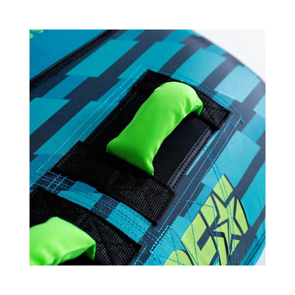 Ce modèle de bouée tractée Scout 2 places est vraiment un jouet amusant, offrant une combinaison folle d’excitation, de stabilité et de confort et d’assise confortable. Sa large envergure et sa forme ronde lui permettent de glisser facilement sur les grosses vagues. Un coussin de siège en néoprène donne un peu plus d’adhérence lors des éclaboussures.