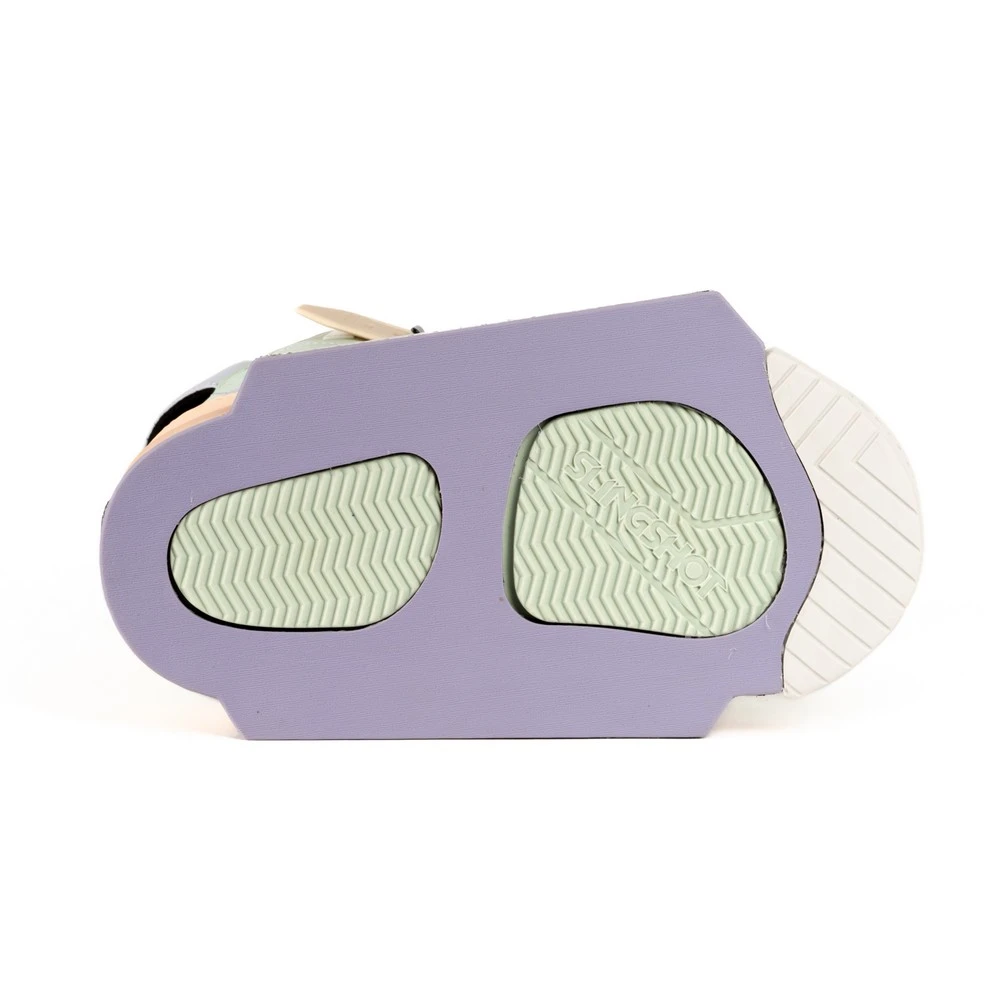 Slingshot a un système de fermeture révolutionnaire : les Gummy Straps. Ces bandes de polyuréthane thermoplastique permettent un serrage et un maintien parfait. Ce système permet d’éviter le relâchement de la chausse au fil des sessions car à la différence d’un velcro les Gummy straps ne bougent pas dans le temps.
