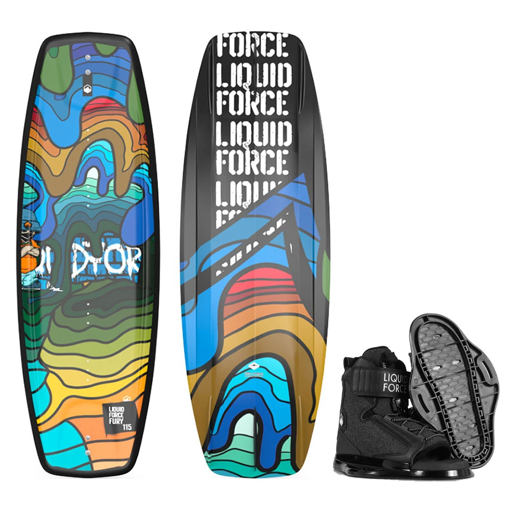 Livré prêt à aller sur l’eau avec une planche Liquid Force Fury 2023 ainsi qu’une paire de chausses Liquid Force Rant Junior 2022