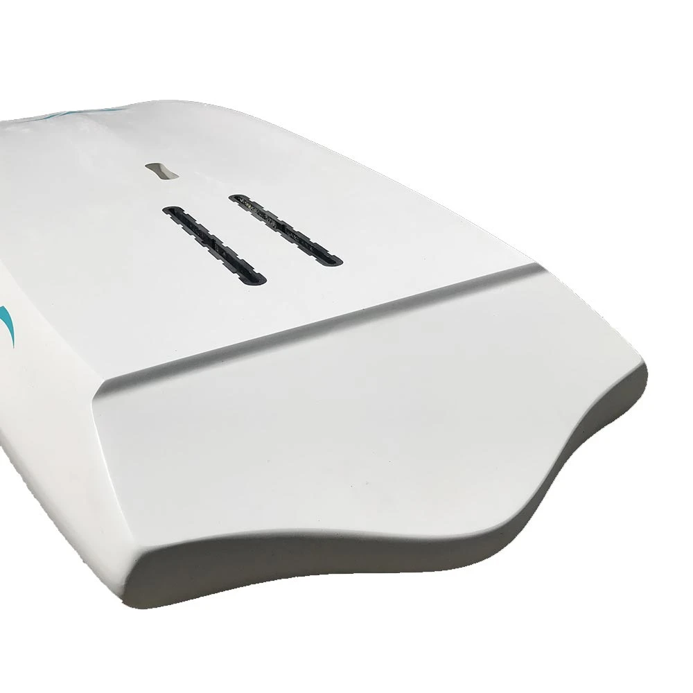 La planche de wingfoil et SUP foil JKS Board Supreme est un modèle optimisé pour les 2 disciplines en foil. Conçue pour une utilisation orientée freeride et vagues dans toutes les conditions, son shape compact et volumineux associé à une ligne de rocker spécifique permet un décollage facile et rapide sur tout type de plan d’eau. La carène a été travaillée de façon à offrir stabilité et confort en navigation dans les plans d’eau difficiles. Elle bénéficie d’une construction fibre de verre 100% française et sa poignée de portage placée sous la carène la rend très facile à transporter !