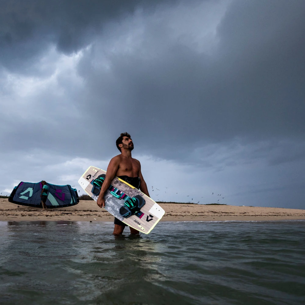La planche de kitesurf Duotone Jaime 2022 bénéficie d’un renfort en X positionné au-dessus et en dessous de la planche appelé flex Double Diffusor. Il optimise le rendu énergie lors d’un blocage freestyle aile basse mais favorise aussi l’absorption du clapot pour une meilleure stabilité à la réception mais aussi lors d’un run à pleine vitesse. Les prises d’appels au sauts sont meilleures en mode freeride et la réception plus douce.