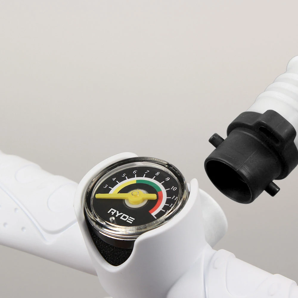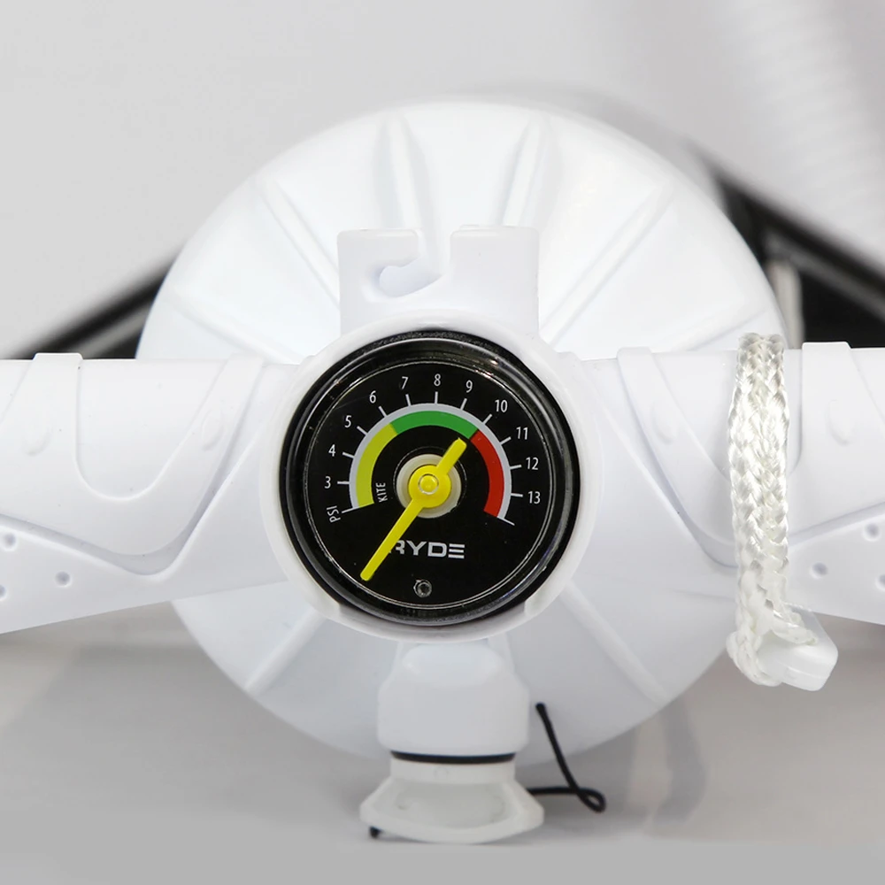 La pompe Ryde est l’une des pompes les plus efficaces sur le marché, grâce à son système de réduction d’effort. Ce système permet de gonfler tous types de produits facilement, peu importe la taille, pour une pression maximale de 13 PSI. Pour kitesurf, wingfoil mais aussi kayak, matelas gonflable, tente, bouée gonflable, etc.