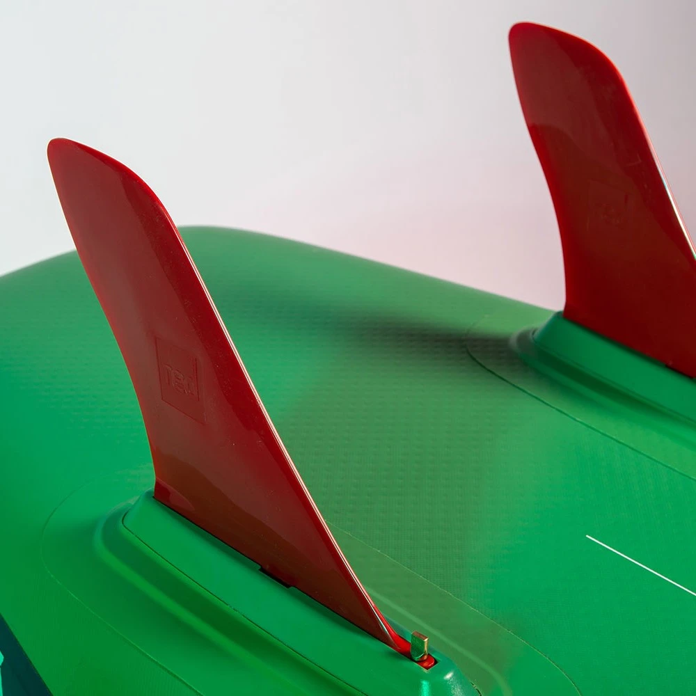Un petit aileron moulé en plastique sur l’avant stabilise la planche par vents latéraux et de 2 ailerons du même type sur l’arrière évitent l’effet de traîne lorsque la planche est chargée. Le système RSS (Rocker Stiffening System), 2 lattes en fibre à glisser le long de chaque rail afin d’augmenter la rigidité générale de la planche sur l’eau et donc ses performances.