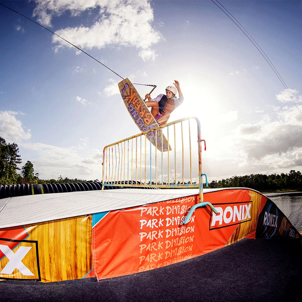 Les rails en élastomère offrent une meilleure résistance aux chocs en utilisation câble et apporte plus de rigidité au wakeboard.